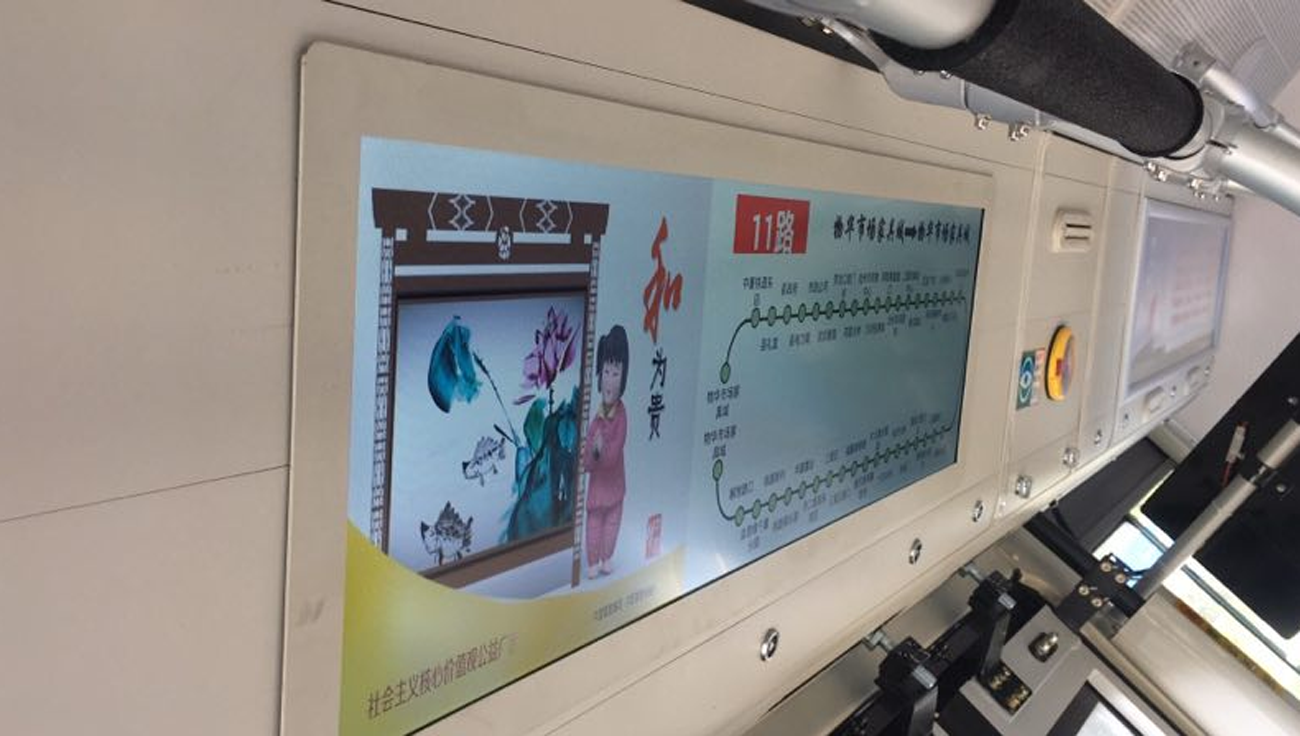 LCD導乘屏顯示技術是一個新興的技術,具有高亮度、高對比度、高色彩飽和度、高色彩均勻度、長壽命、平均無故障時間短等特點,目前在許多城市公交都有應用,具有非常好的視覺效果。還具有顯示清晰、可視面積較大、顯示比例可調、色彩艷麗明亮并且機體很薄,使用壽命長。以前的LED顯示屏大多都為單色屏,只能簡單的顯示文字及數字,LCD導乘屏可以自由顯示圖像視頻文字動畫等,在播報的同時還可以播放商業廣告及公益廣告等內容。隨著科技的發展和進步,到目前LCD導乘顯示屏已經可以做到抗震,耐沖擊,抗高溫,防水等功能,較少的投資得到極好的顯示效果,性價比極高。